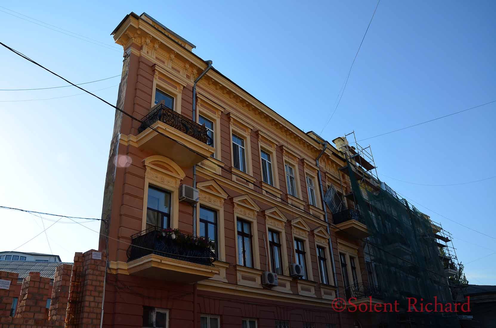 As an amusing interlude he took us through a number of back streets to see two unusual somewhat ‘quirky’ features of Odessa’s architecture. This interesting building appears to be just a facade or, as Yuriy described it, a film set piece…
