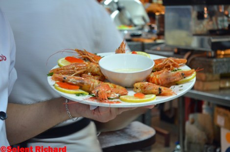 This was a hard call on which of the options we should chose to offer our patronage. In the event We chose wisely, sat at a bar from where we could watch the cooking and various prepared dishes…